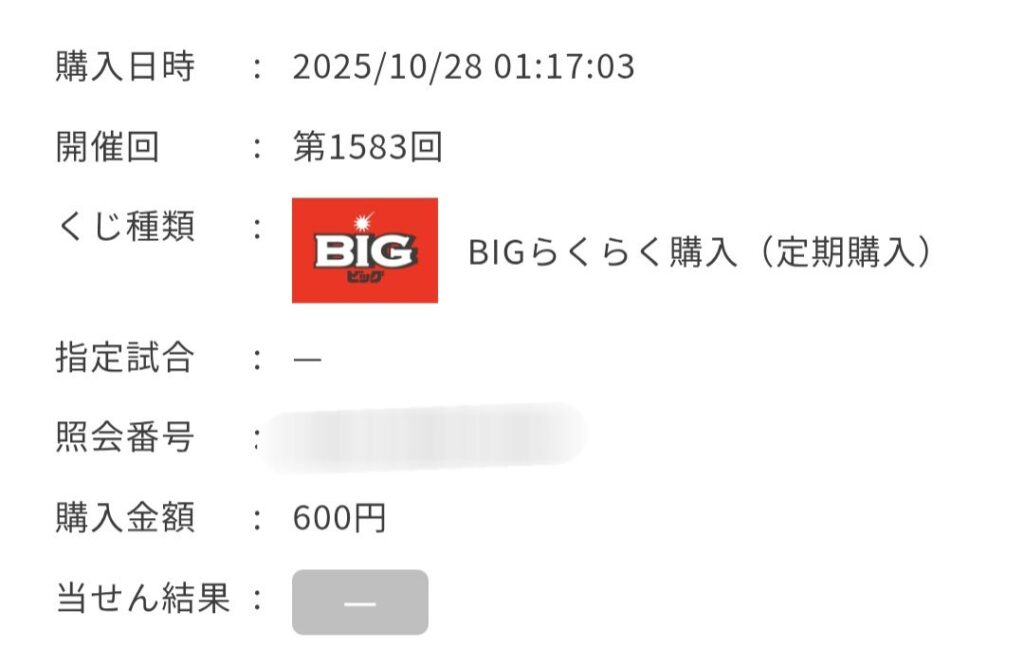 | totoBIG | 2口 | 600円 |